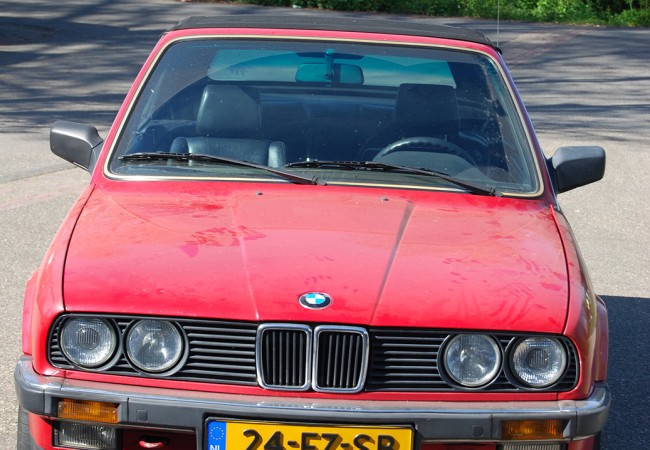 De cabriokap wordt eerdaags geheel vervangen zodat deze BMW 325i E30 weer in een fraaie staat is teruggebracht.