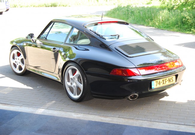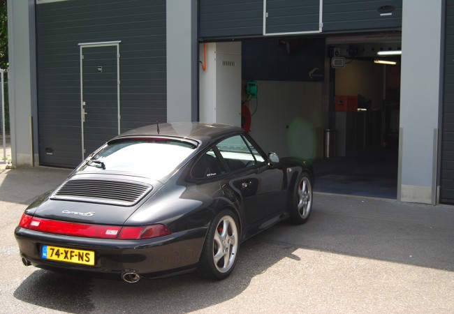 Deze Porsche 993 4S is een van de allerlaatste luchtgekoelde Porsches die gemaakt is, 1998 om precies te zijn. De auto heeft slechts 120.000 km gereden, maar komt slechts met mooi weer de garage uit. Hoewel de Porsche in een nette staat verkeerd wilde de eigenaar hem weer fabrieksnieuw hebben. Wij hebben de auto gewassen, en voorzien van een lakverzegeling! Daarbij is het raflederen interieur middels de waterflow methode weer als nieuw. De velgen zijn gedemonteerd en alle lijmresten van oud plaklood is verwijderd, net als de voor- en achterlichten. De reflectorplaat van de 993 carrera wordt snel dof, maar is in de originele glans teruggebracht. Ook de 6 cilinder boxermotor is gelukkig droog zonder lekkage, maar is in de tijd natuurlijk wel vuil geworden. Middels stoomcleaning is hij weer brandschoon. De originele mattenset kon weer in nieuwstaat worden gebracht. Bij het uitzetten van de airco ontstond een wat muffe geur en ook dit is opgelost. Hiervoor gebruiken we speciale spray. Deze 993 4S is werkelijk weer in een sublieme staat, zowel binnen als van buiten.
